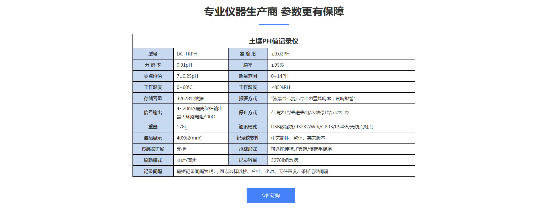酸度計(jì)測試土壤ph值參數(shù)配置表