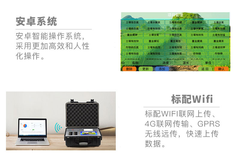 2.android智能操作系統(tǒng),采用更加高效、人性化的操作方式,利用Wifi網(wǎng)絡(luò)上傳儀器,4g網(wǎng)絡(luò)傳輸,gprs無(wú)線(xiàn)遠(yuǎn)程傳輸,快速上傳數(shù)據(jù)。